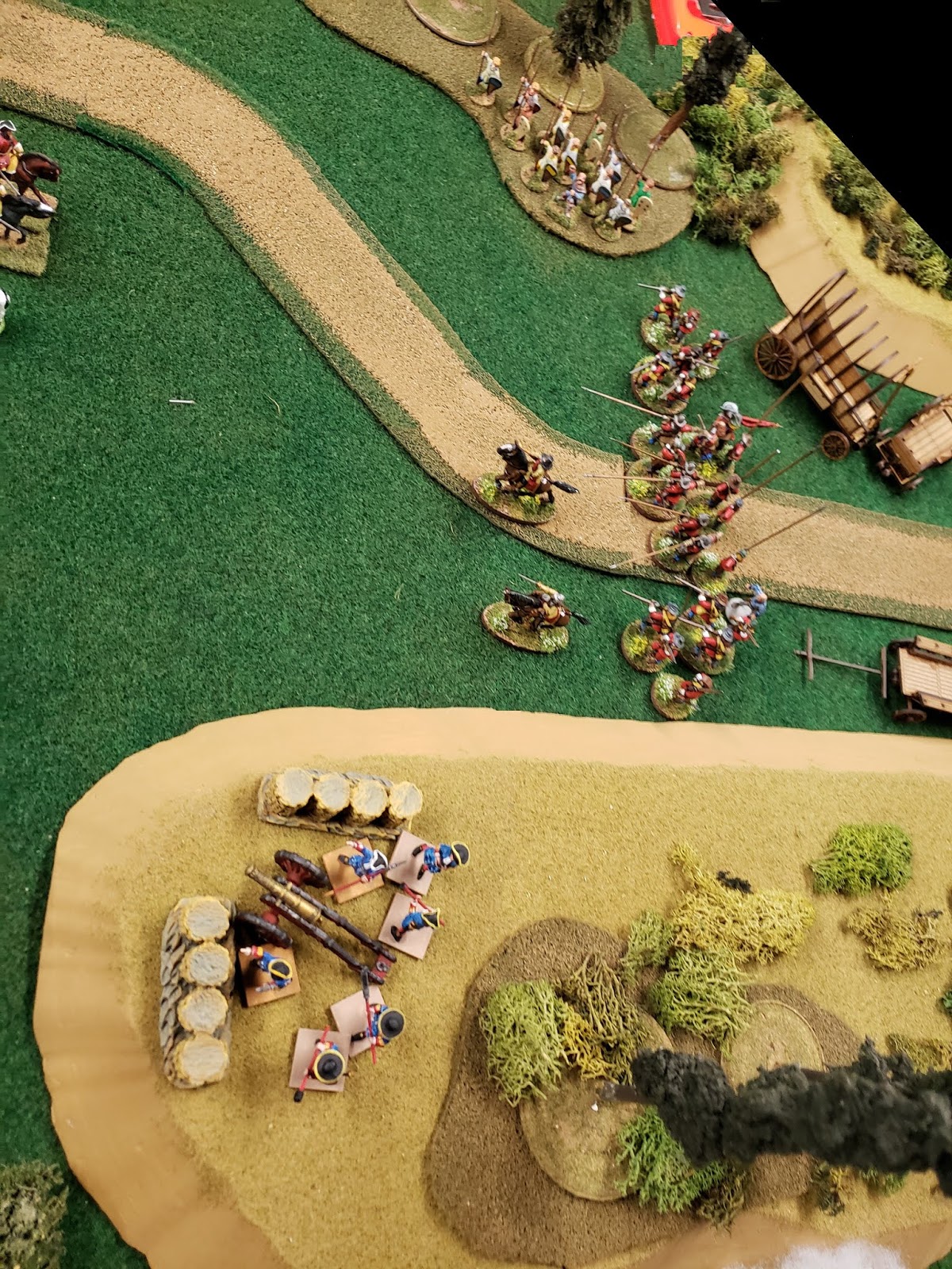 to the north my cavalry finally advanced filling the gap between the cottage and the hedges